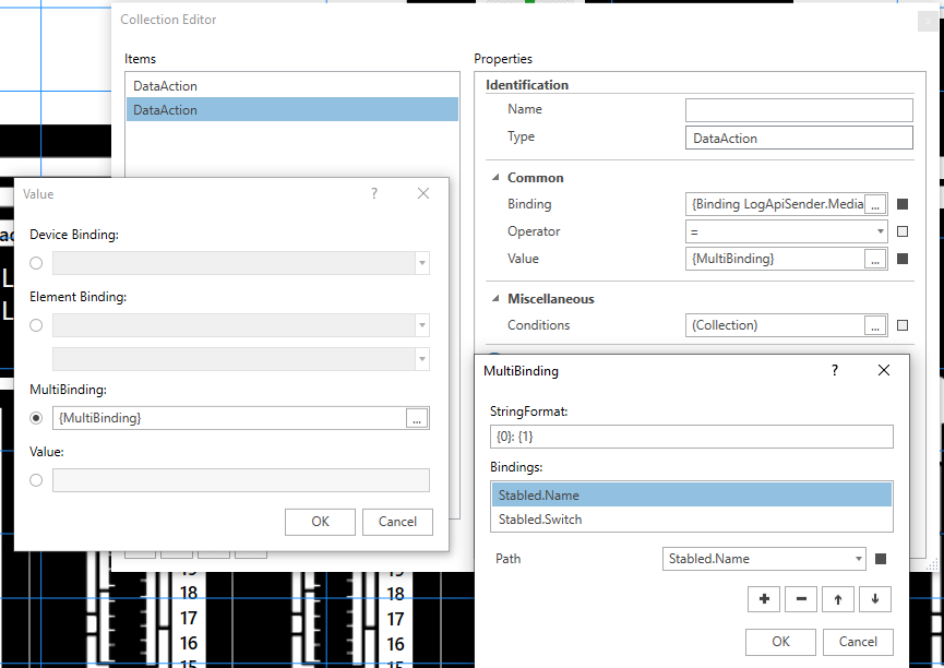 to assign this function to a button use "LogApiSender.MediaCommand and for value you can use any device binding or your own text - but multibinding makes the most sense for me.